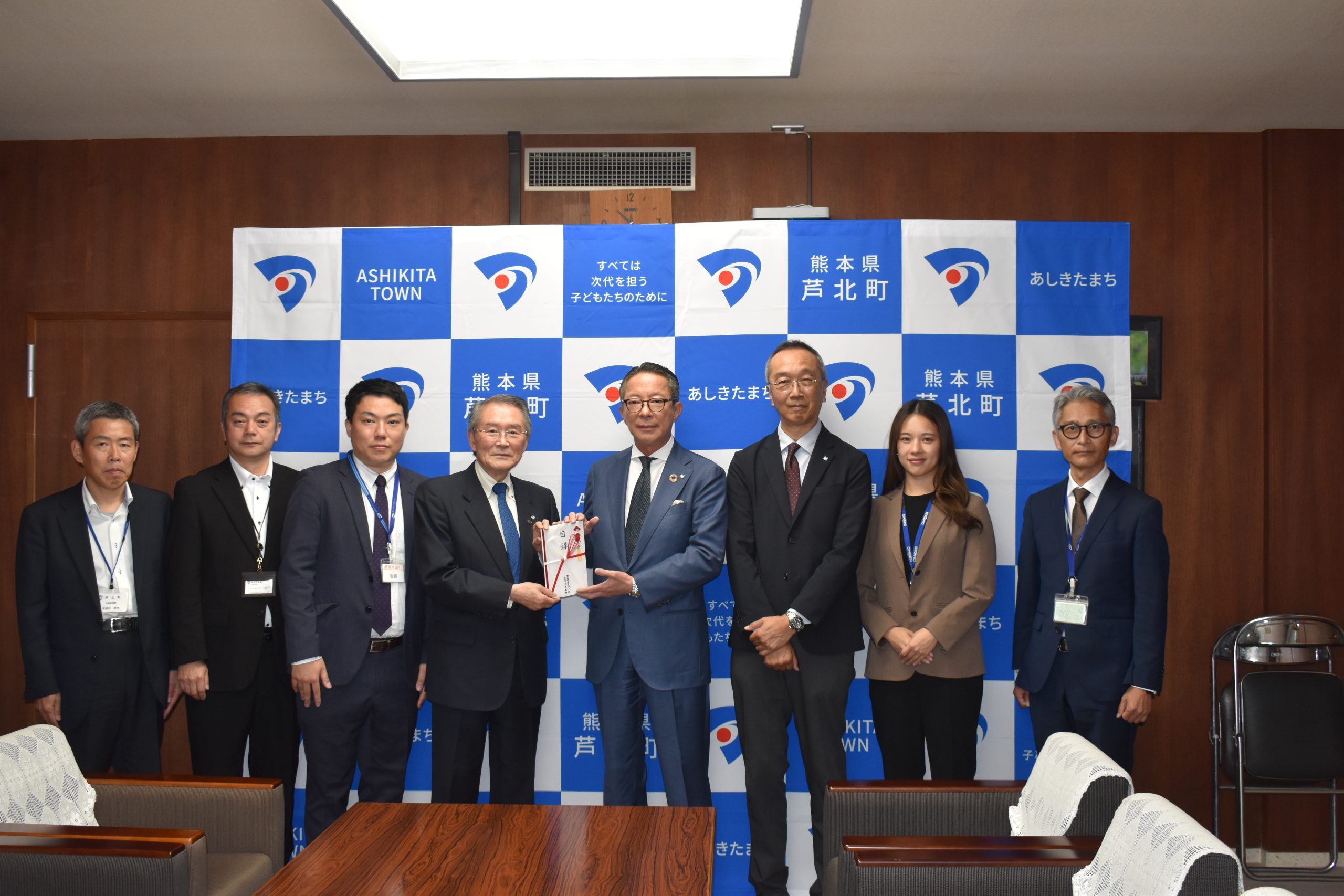 4月17日(金)、「まち・ひと・しごと創生寄附活用事業(企業版ふるさと納税)」を通じて、今年も芦北町の地方創生の取組み「地域で支える子育て応援プロジェクト」へ寄附させていただきました。
